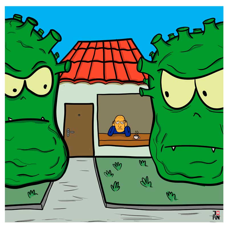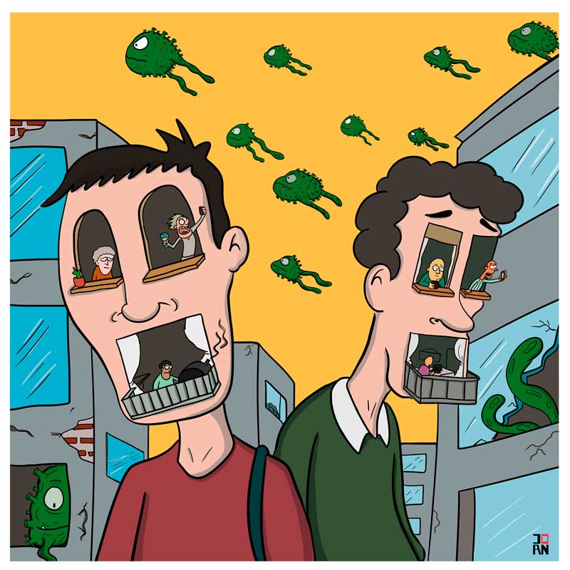 Las obran relatan el agobio y la tristeza que trae el confinamiento.